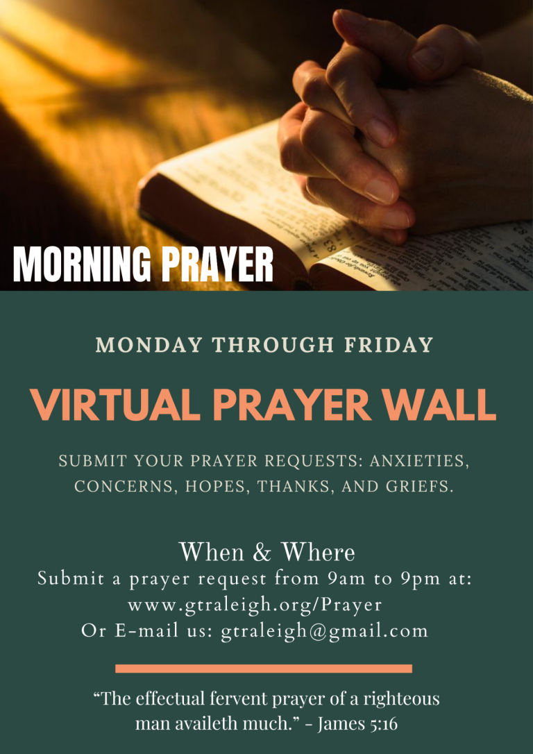 We invite you to join our Morning Prayer and Virtual Prayer Wall, a dedicated space where individuals can bring their requests before God. Whether you are facing challenges or celebrating blessings, our prayer team is ready to stand with you in prayer.